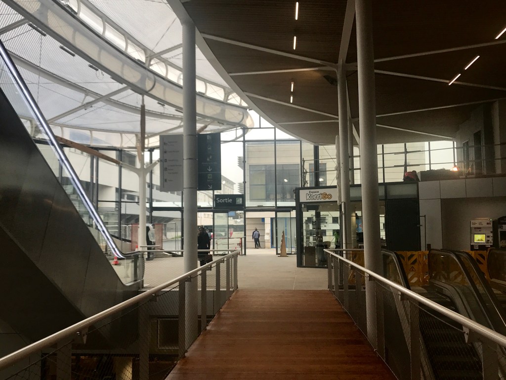 その後、再び駅構内の階段で降り、構内の看板に書かれたバスのチケット売り場であるEspace Korrigo、またはGare routière(フランス語でバスターミナル)の表記に従って進みます。